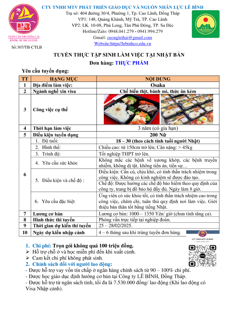 Đơn hàng thực phẩm vẫn đang tiếp tục tuyển các ứng viên vào tháng 02/2025, các bạn có nhu cầu muốn làm việc và trải nghiệm tại đất nước Nhật Bản hãy đăng ký ngay nhé!