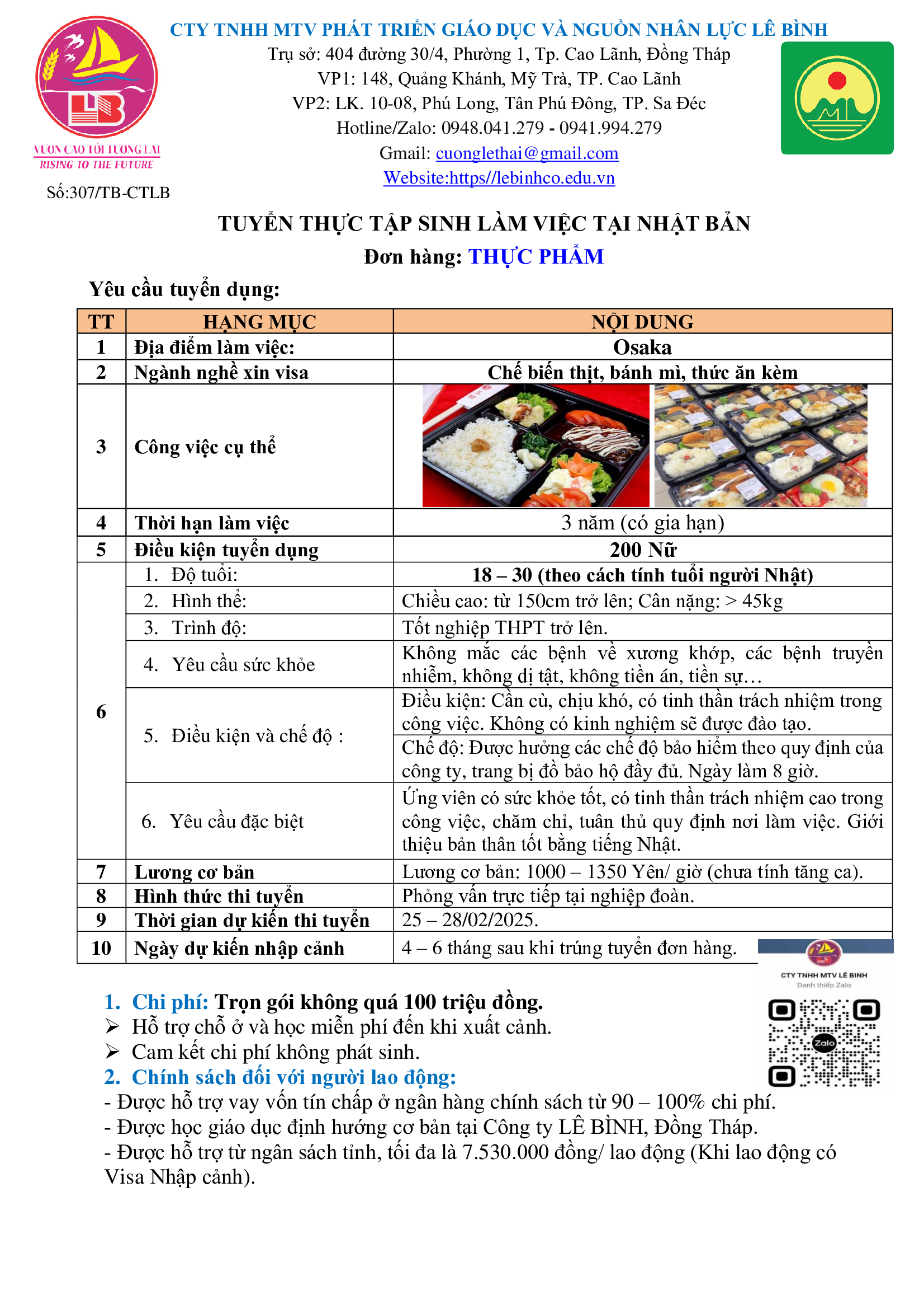 Đơn hàng thực phẩm vẫn đang tiếp tục tuyển các ứng viên vào tháng 02/2025, các bạn có nhu cầu muốn làm việc và trải nghiệm tại đất nước Nhật Bản hãy đăng ký ngay nhé!
