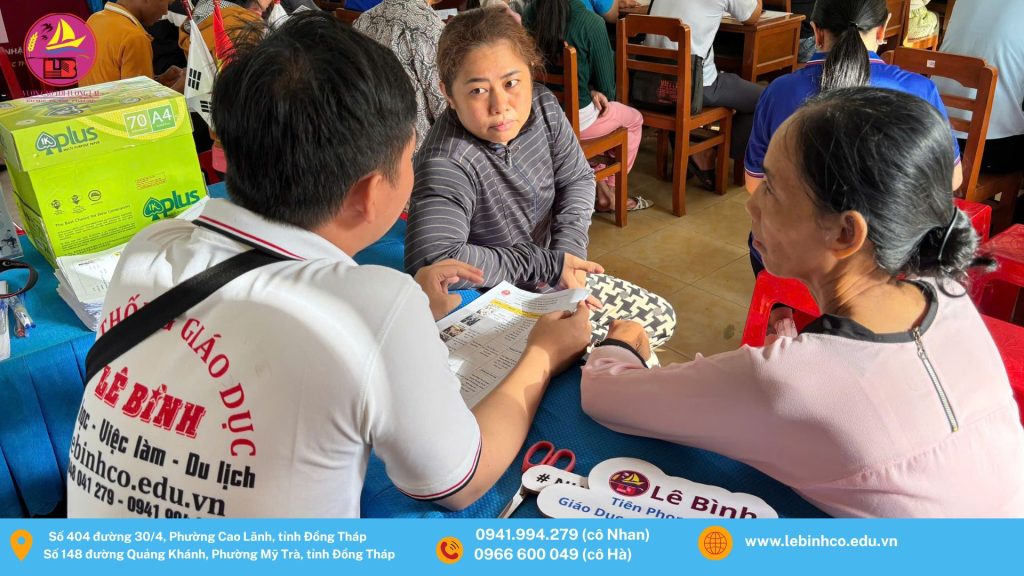 Hoạt động kết nối, phát triển nguồn nhân lực tại địa phương, Công ty TNHH MTV Phát triển Giáo dục và Nguồn Nhân lực Lê Bình đã tổ chức phiên tư vấn việc làm trực tiếp tại phường Mỹ Trà, nhằm hỗ trợ người lao động tiếp cận thông tin nghề nghiệp, đào tạo và cơ hội việc làm phù hợp.